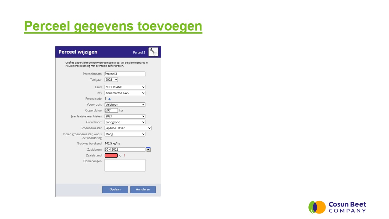 Perceelgegevens toevoegen